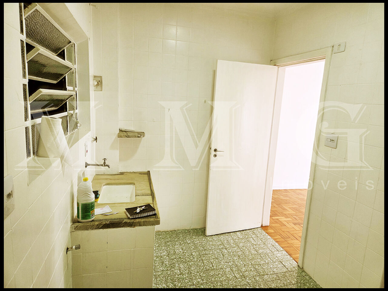 Apto venda com um dormitório sem armário, sala ampla, cozinha bom tamanho com área de serviço. banheiro com box. Ótima localização. Apto em bom estado, estilo antigo.